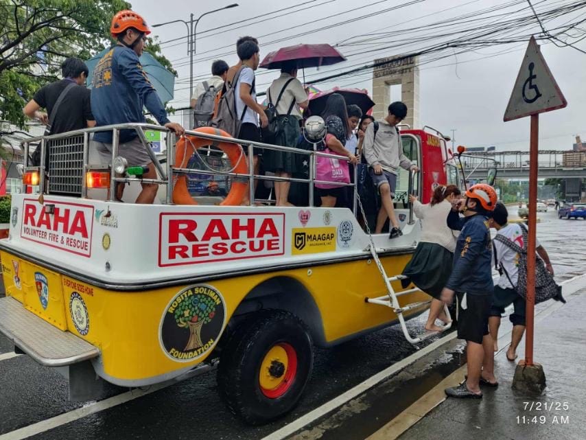 On Monday, July 21, 2025, following the intense rainfall due to relentless rains brought by the southwest monsoon that led to severe flooding along España Boulevard, leaving many students stranded in rising flood. In response, members of the RAHA rescue team – supported by MAAGAP Insurance – swiftly deployed an amphibious vehicle to help stranded students navigate through floodwaters, ensuring their safety and well-being.