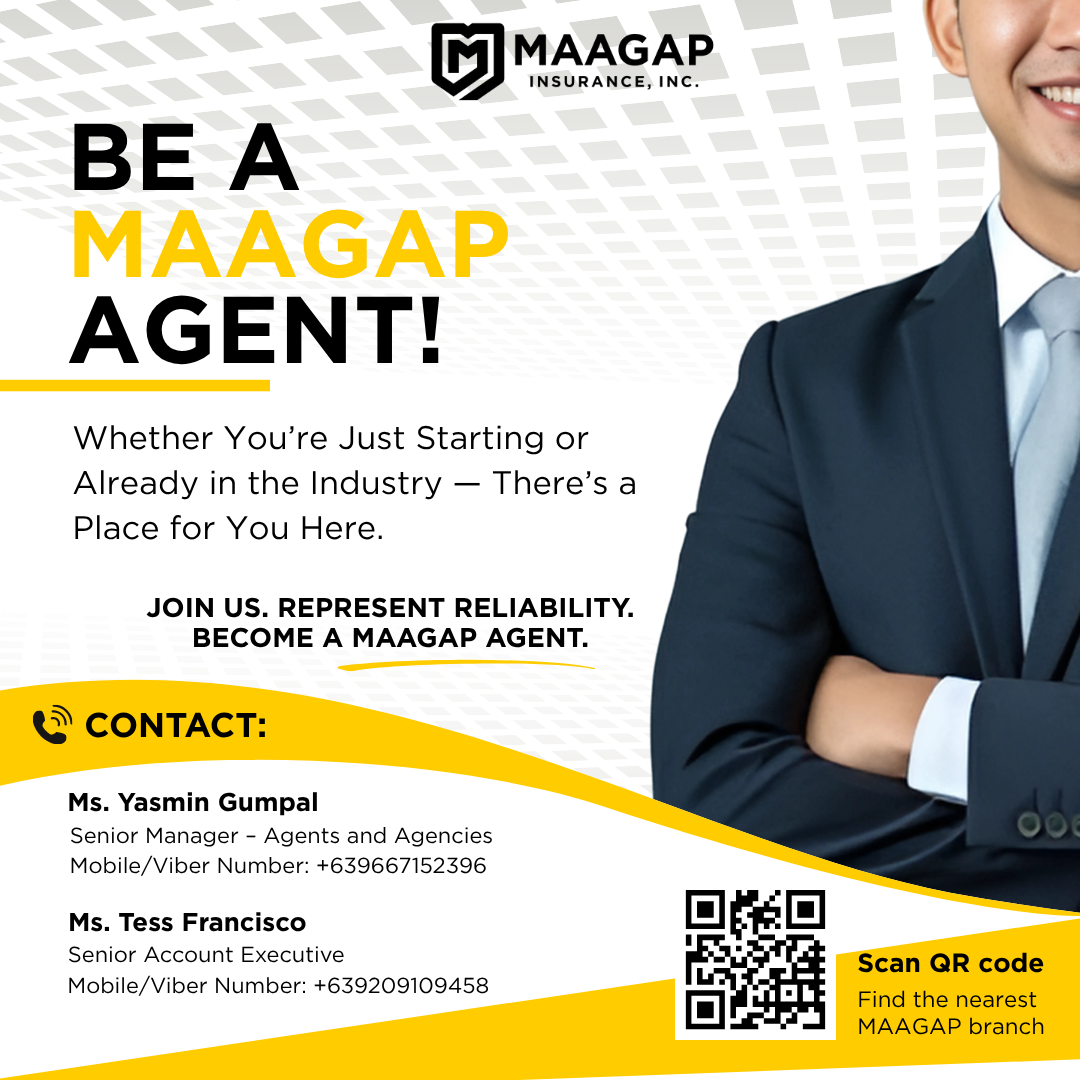 We welcome both aspiring professionals and experienced agents to join our growing team of empowered, flexible, and mission-driven insurance agents through our Head Office located at 10th Floor, Pearlbank Centre, 146 Valero St. Salcedo Village, Makati City or find your nearest branch at www.maagap.com/branches.